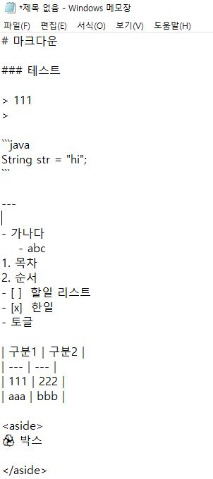 - 마크다운은 대부분의 환경에서 편집, 작성이 가능합니다. (메모장에서도 가능)