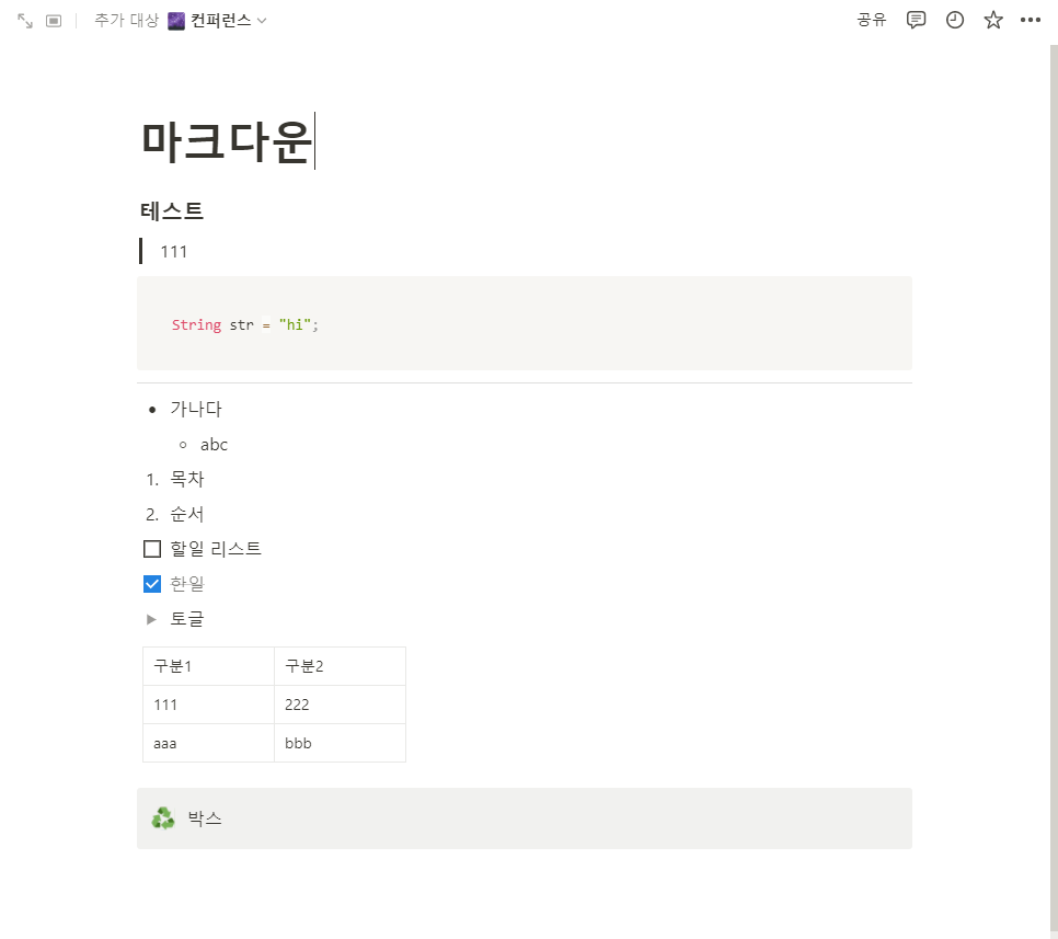 마크다운 문법을 간단히 확인해 보는방법으로 노션을 예로 들면