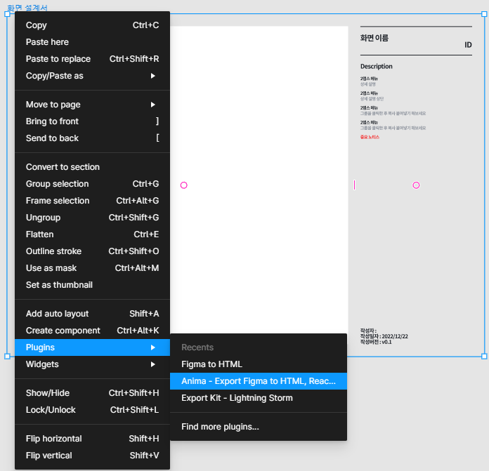 작업한 디자인을 html뿐만 아니라 React, Vue.js 형태로도 코드를 뽑아낼 수 있습니다.