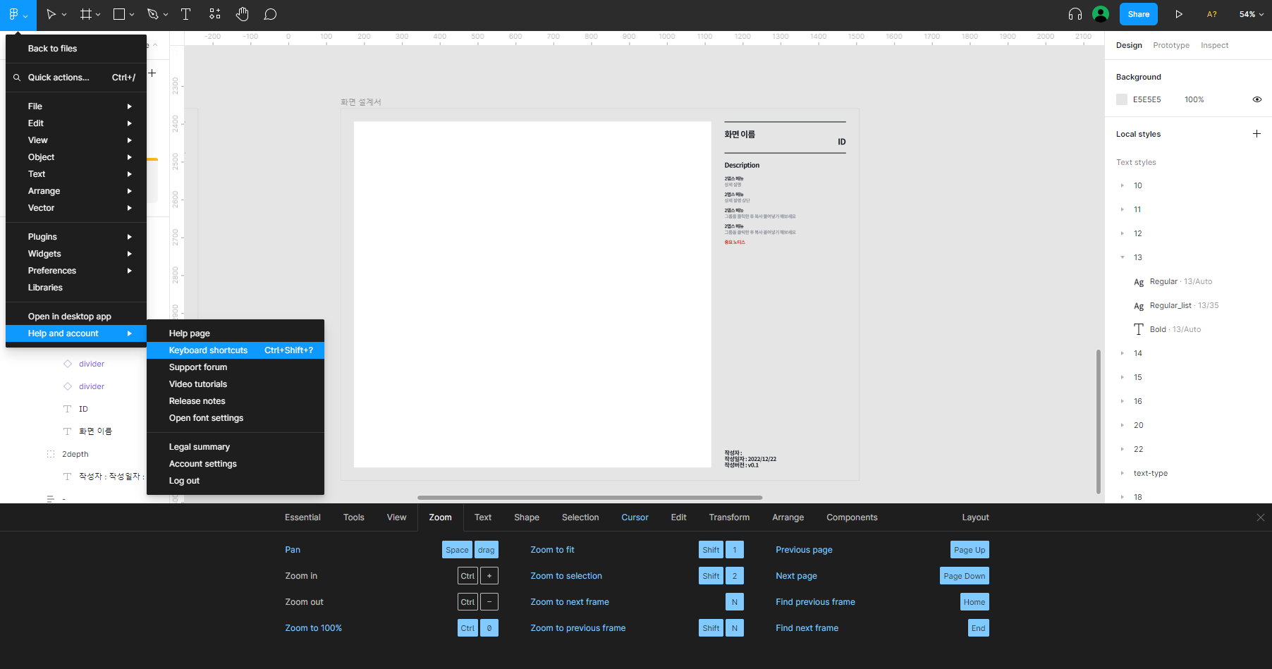 위 화면의 메뉴 키보드 숏컷을 열어서 단축키 활용부터 연습을 시작하면 도움이 될 것 같습니다.