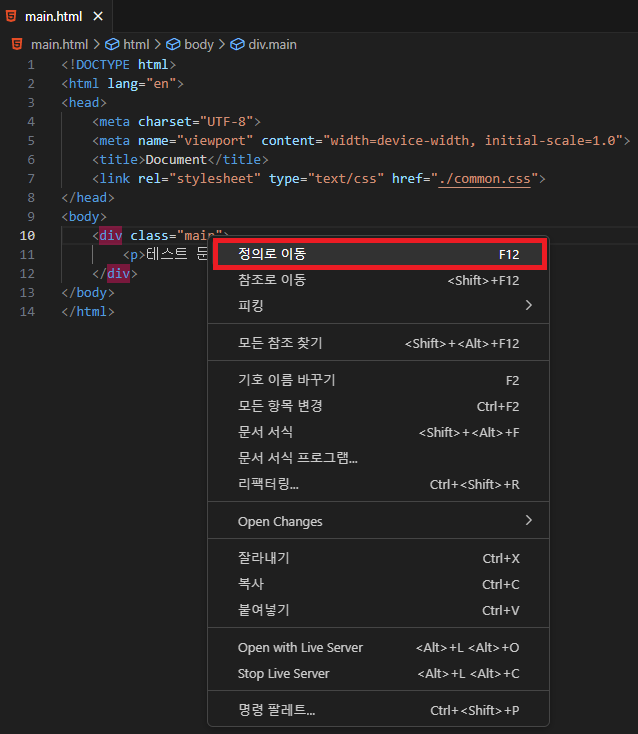위처럼 정의로 이동이라는 기능이 생겼다. 클릭하면 해당 파일의 위치와 css 내용을 보여준다.